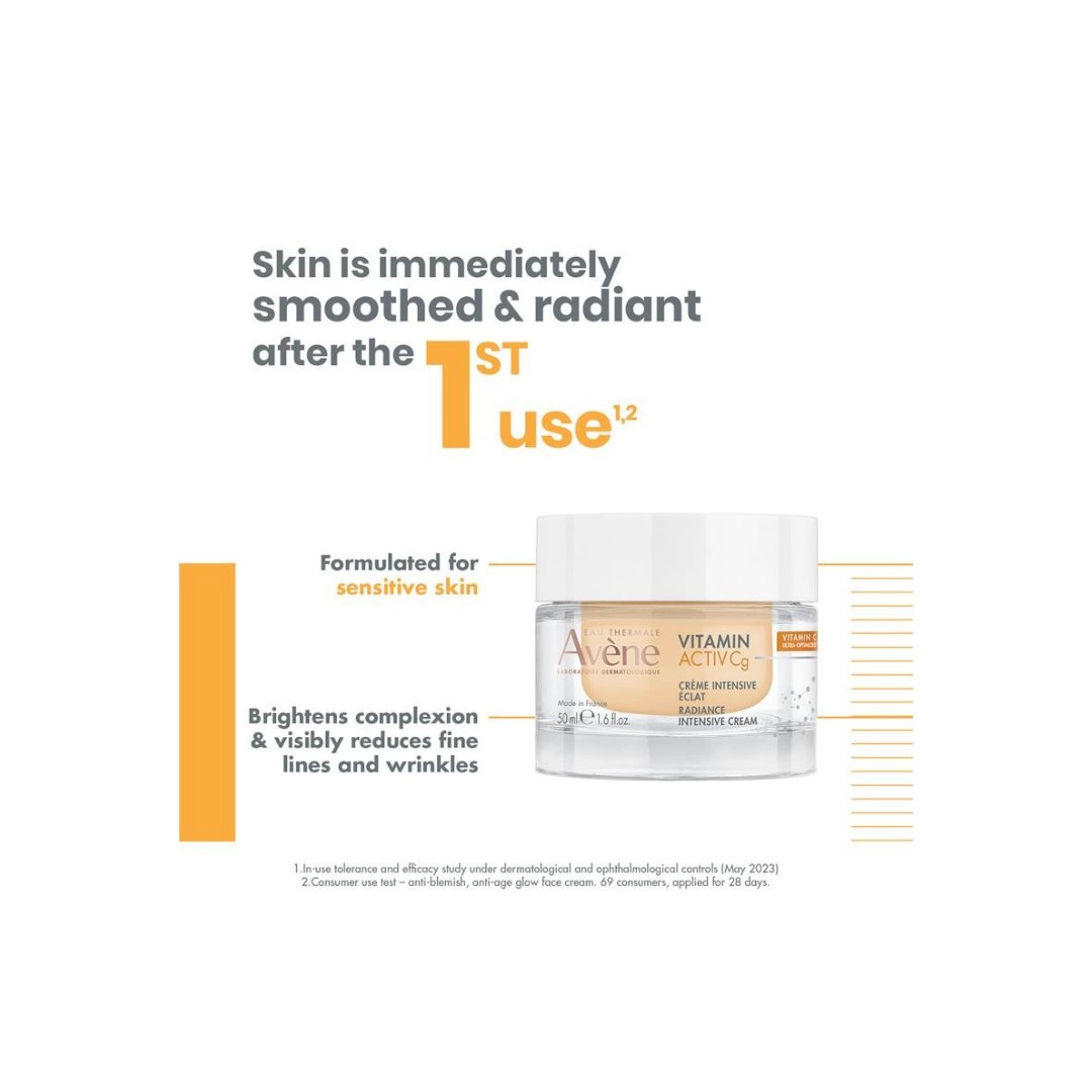 Avene Vitamin Activ Cg Radiance Intensive Cream is a daily anti-ageing moisturiser, where the key ingredients help to brighten the overall skin complexion and visibly reduce fine lines and wrinkles.