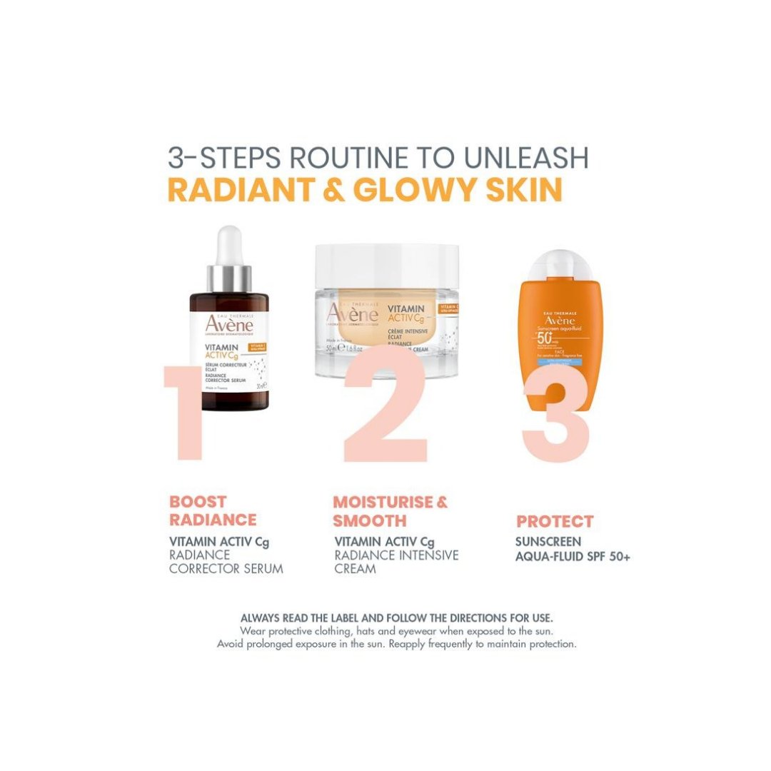 Apply alone or after the Avène Vitamin Activ Cg Radiance Concentrated Serum to the face, neck and neckline in the morning and/or evening. Avoid contact with the eyes.